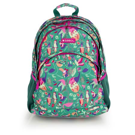 Hátizsák, iskolatáska, cipzáras, GABOL "Vida", zöld, trópusi mintás